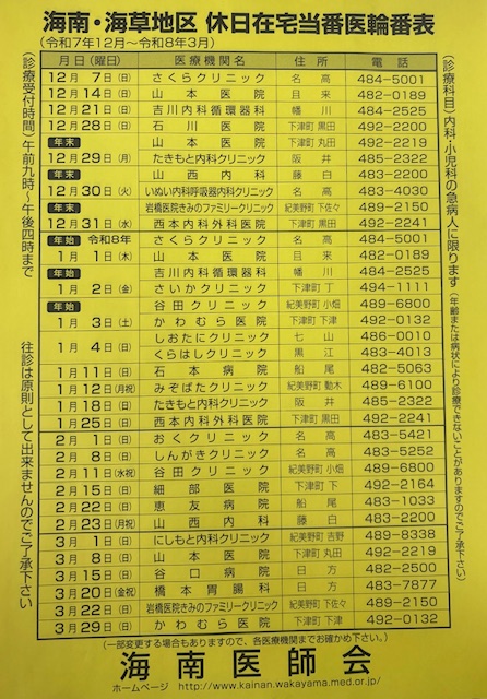 <診療受付時間> 午前9時〜午後4時まで <診療科目> 内科・小児科の急病人に限ります。 (年齢または病状により診療できないことがありますのでご了承下さい) 往診は原則として出来ませんのでご了承下さい。